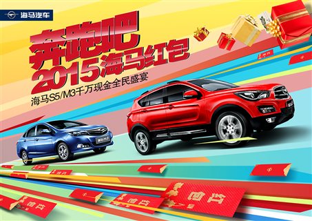 即日起至2014年12月11日,用户关注“海马商城”官方微信,不论年龄,不分职业,晒出手机号就能获得价值2015元购车代金劵1张,在2015年1月31日前购买海马S5/M3任意一款车型使用均有效。