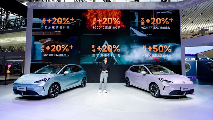 作为本次车展的绝对焦点,全新MG4半固态安芯版完成全球首秀并宣布将于12月正式开启交付,率先实现半固态电池的“真量产、真交付”。该车搭载的半固态电池历经中汽中心极限测试,在螺纹钢穿刺、三向极限挤压、400J底部球击、800℃高温火烧等六大极端工况下均实现“不起火、不爆炸”,安全性能较行业最高标准提升20%以上。这一成果源自上汽与上汽清陶百亿研发投入、600余位顶尖专家20余年技术积累及1600多项专利支撑,更将MG“技术平权”理念推向新高度——以9.98万元限时补贴价,让高端半固态电池安全技术走进普通家庭。