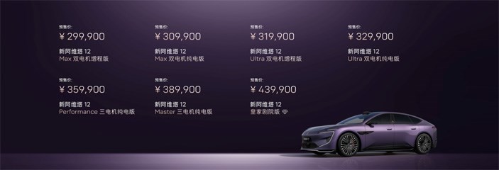2026年3月20日(重庆),新阿维塔12预售发布会在重庆金融会展中心举办。2026年3月20日(重庆),新阿维塔12预售发布会在重庆金融会展中心举办。新车提供纯电与增程双动力,共推出7个车型版本,预售价29.99万元-43.99万元。