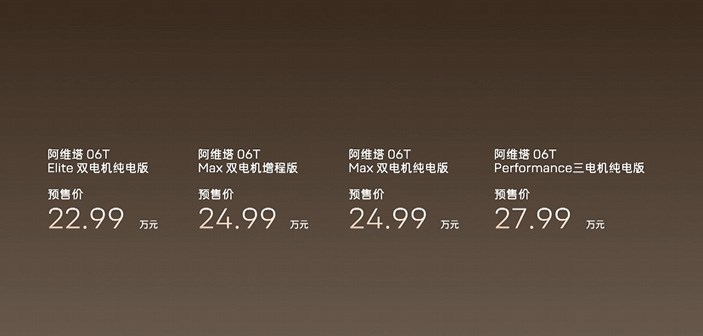 同样在这场发布会中,新款车型阿维塔06T也同时正式开启预售,该车定位“智美全场景运动轿车”共推出4款车型版本,预售价22.99万元—27.99万元。现在下订还可享2,000元意向金抵扣 ¥5,000 元大定定金和阿维塔x 宁德时代联名超薄磁吸充电宝,限量 5,000 份;